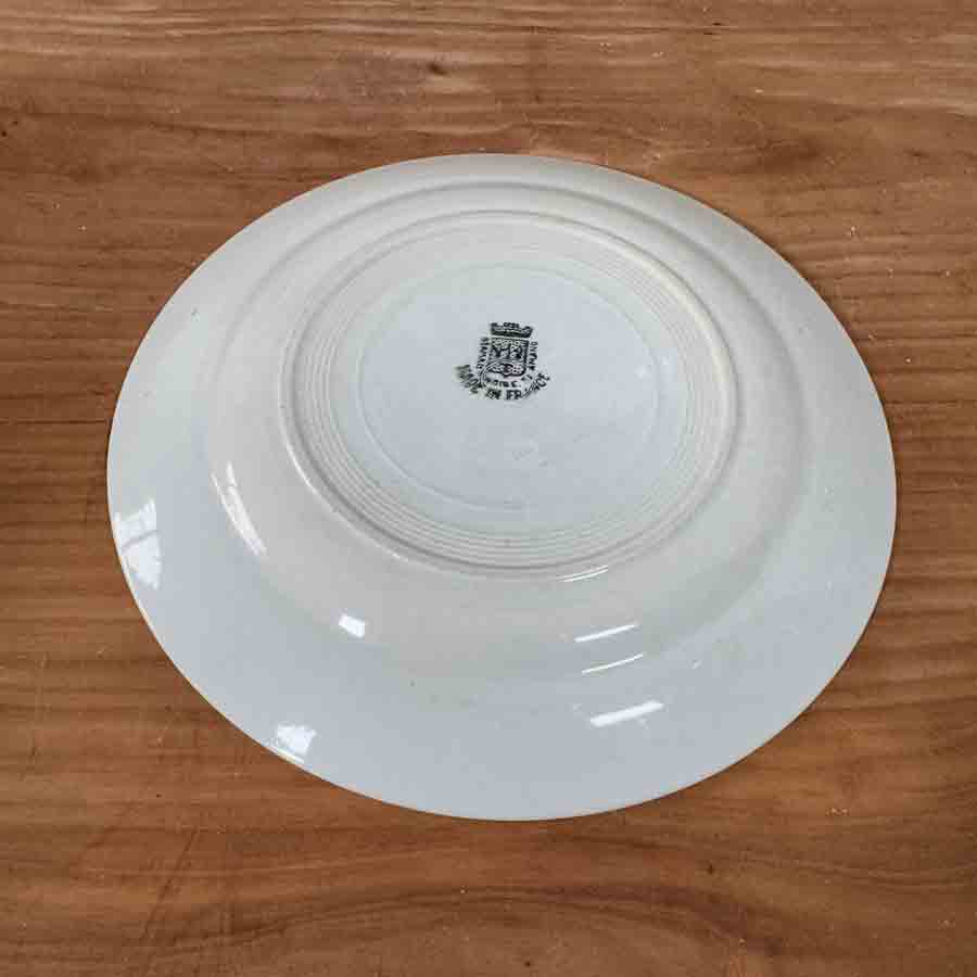 2 x 6 assiettes à creuses XIXème en faïence ivoire de Salins, décor: »Trianon », arabesques, fleurs vert de gris en bon état.- vendues par 6-