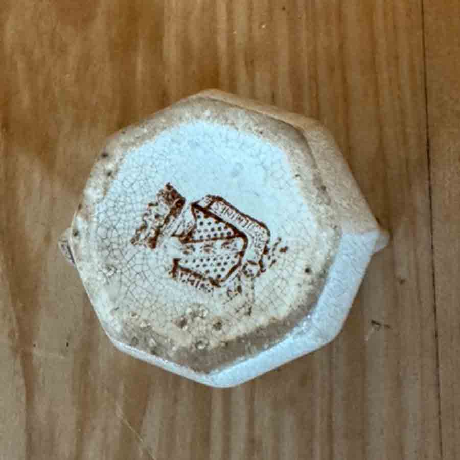 Très belle terrine 1900 et son couvercle en faïence blanche de Sarreguemines en bon état. H.: 125 mm ø: 150 mm