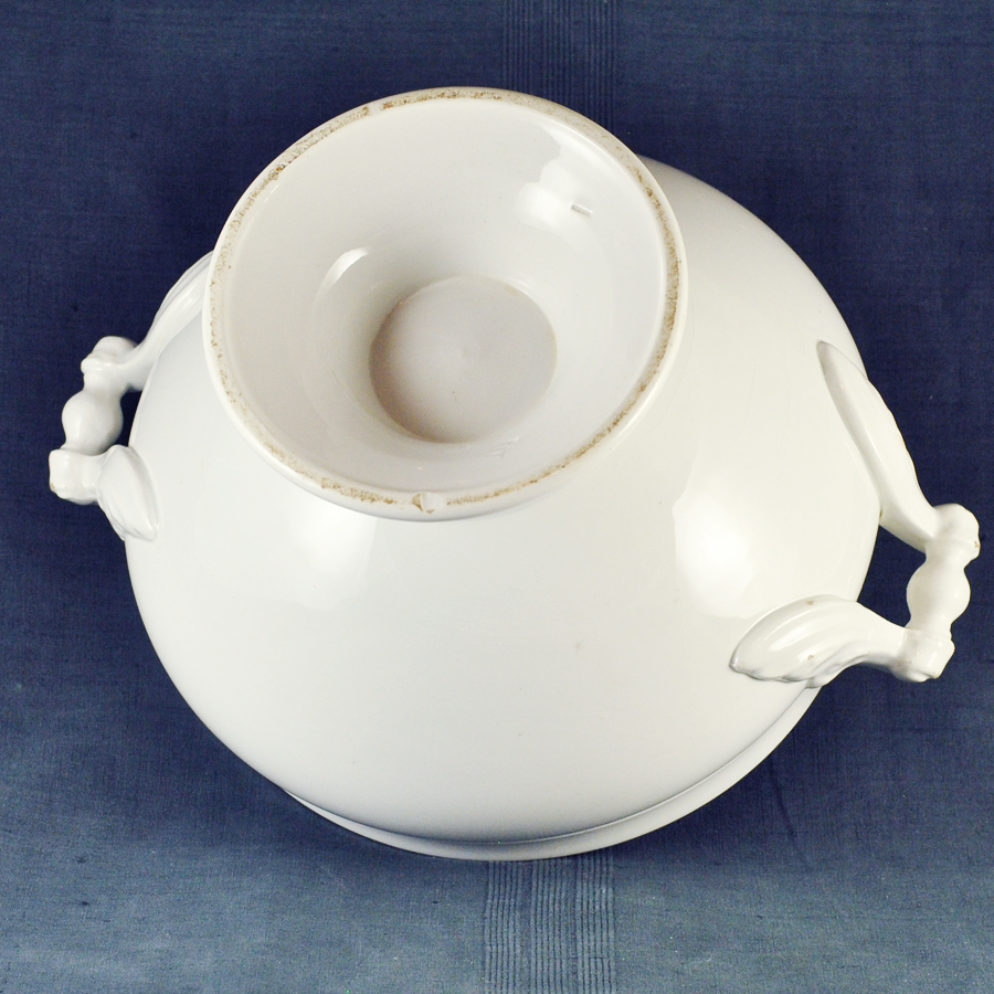 ø: 238 mmGrande soupière XIXe en faïence blanche en bon état.