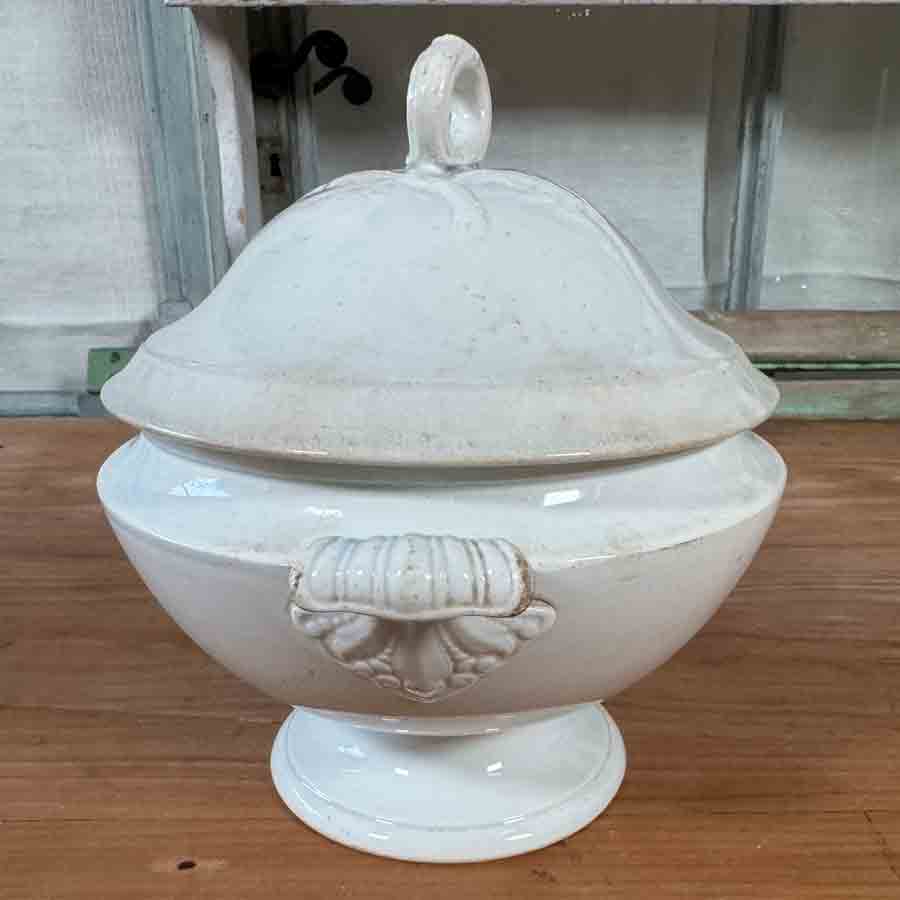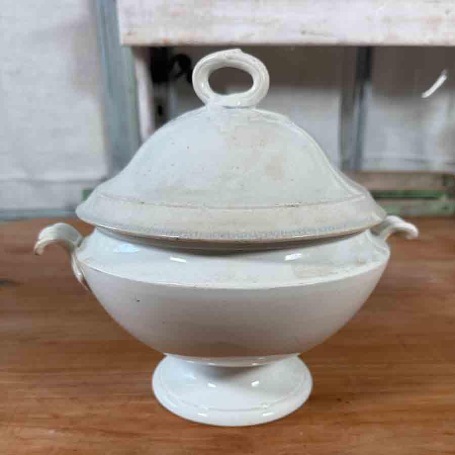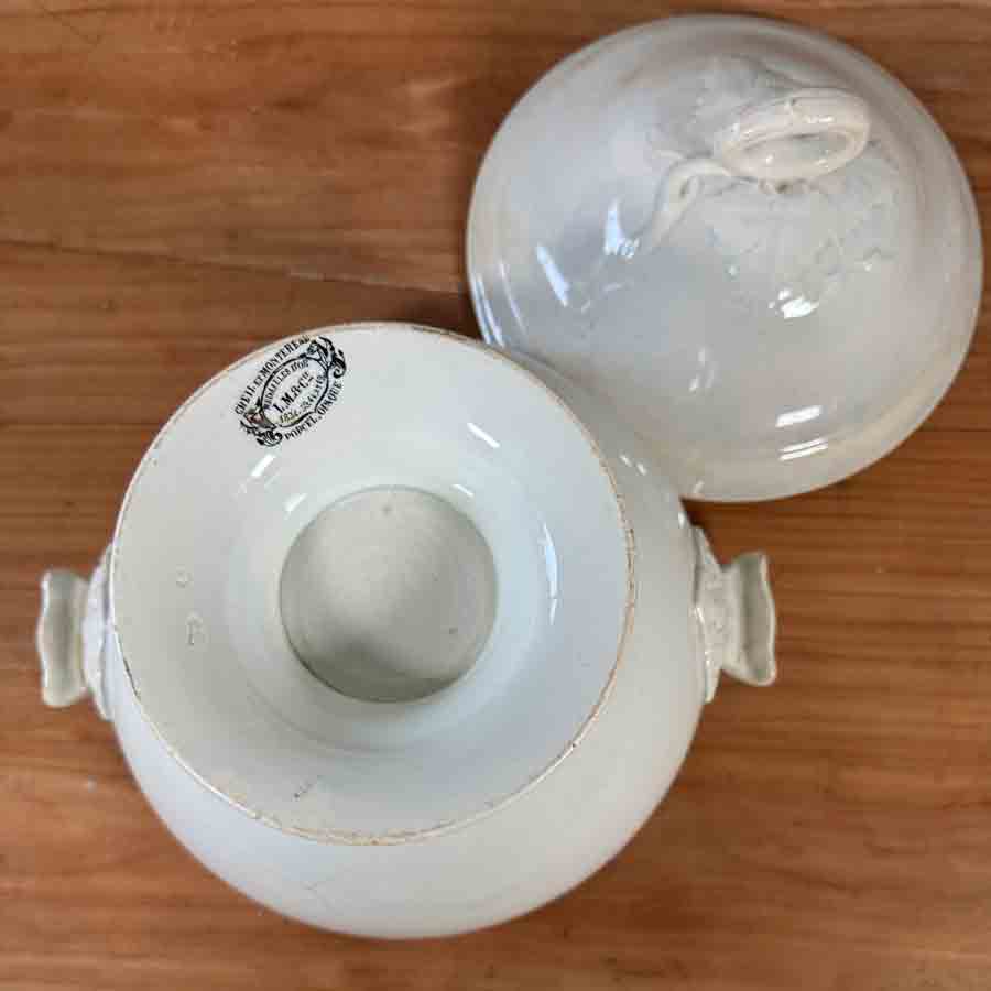 Petite soupière 19ème en faïence blanche de Creil et Montereau, Lebeuf et Millet