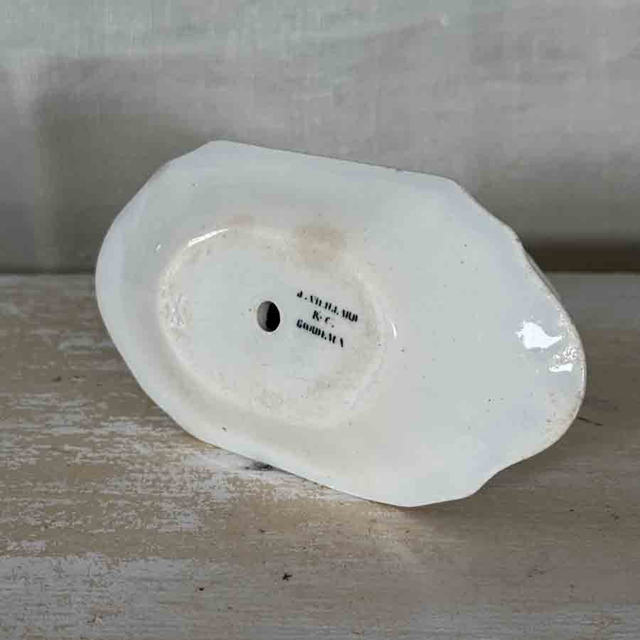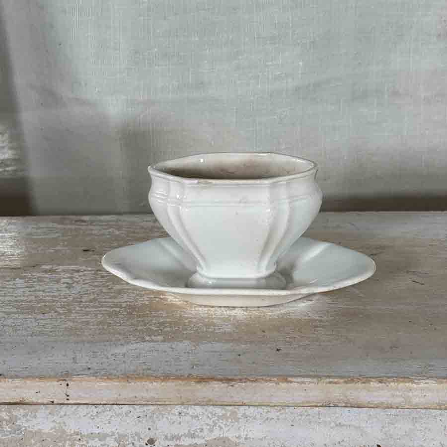 2 x 6 assiettes à creuses XIXème en faïence ivoire de Salins, décor: »Trianon », arabesques, fleurs vert de gris en bon état.- vendues par 6-