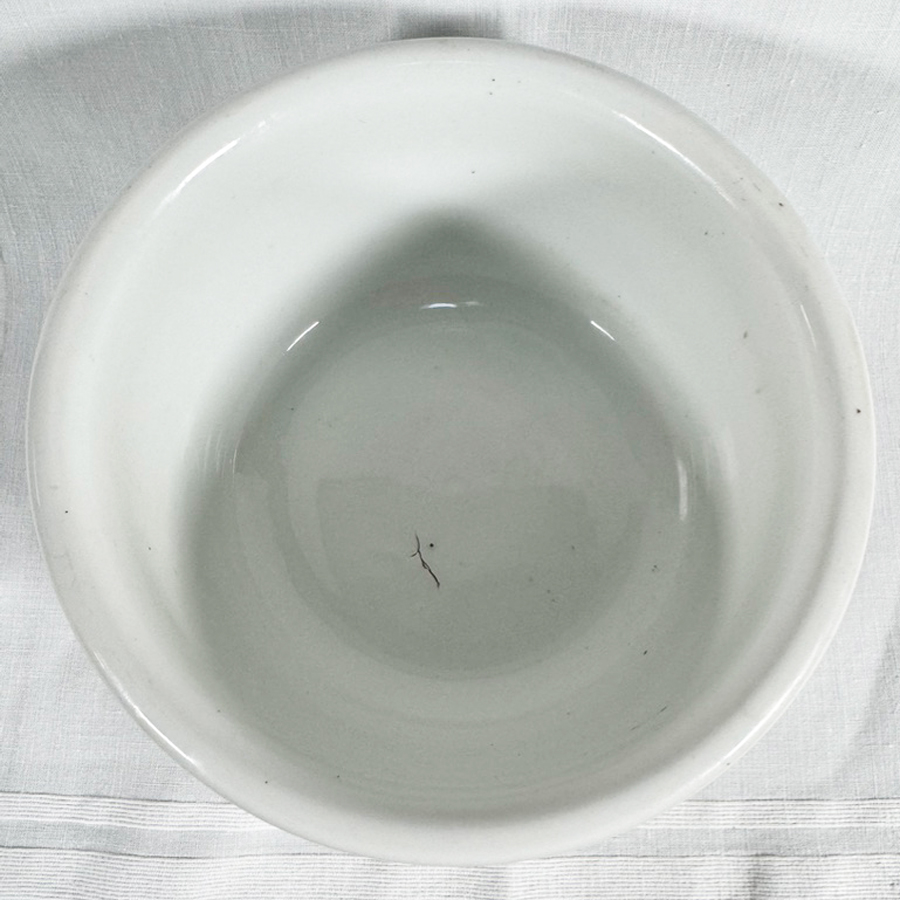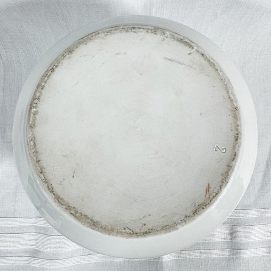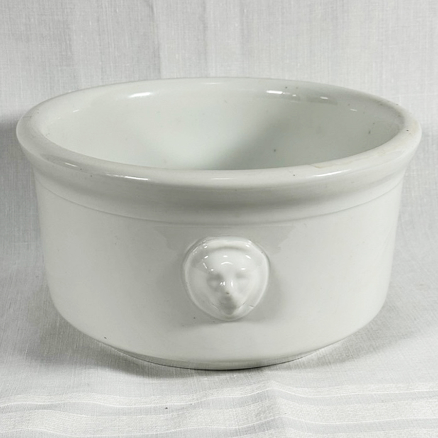 Grande Terrine de charcutier ca 1950 en porcelaine épaisse avec 2 têtes de lion, en bon état.