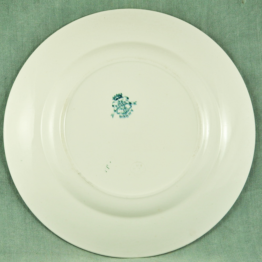 Joli plat XIXème en faïence blanche de Longwy, décor « soleil » bleu/gris, en bon état.