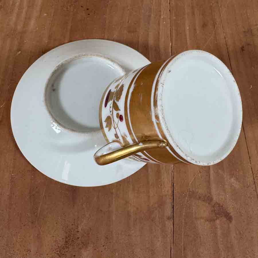 Tasse à café 19ème en porcelaine de Paris blanche décorée à la feuille d’or