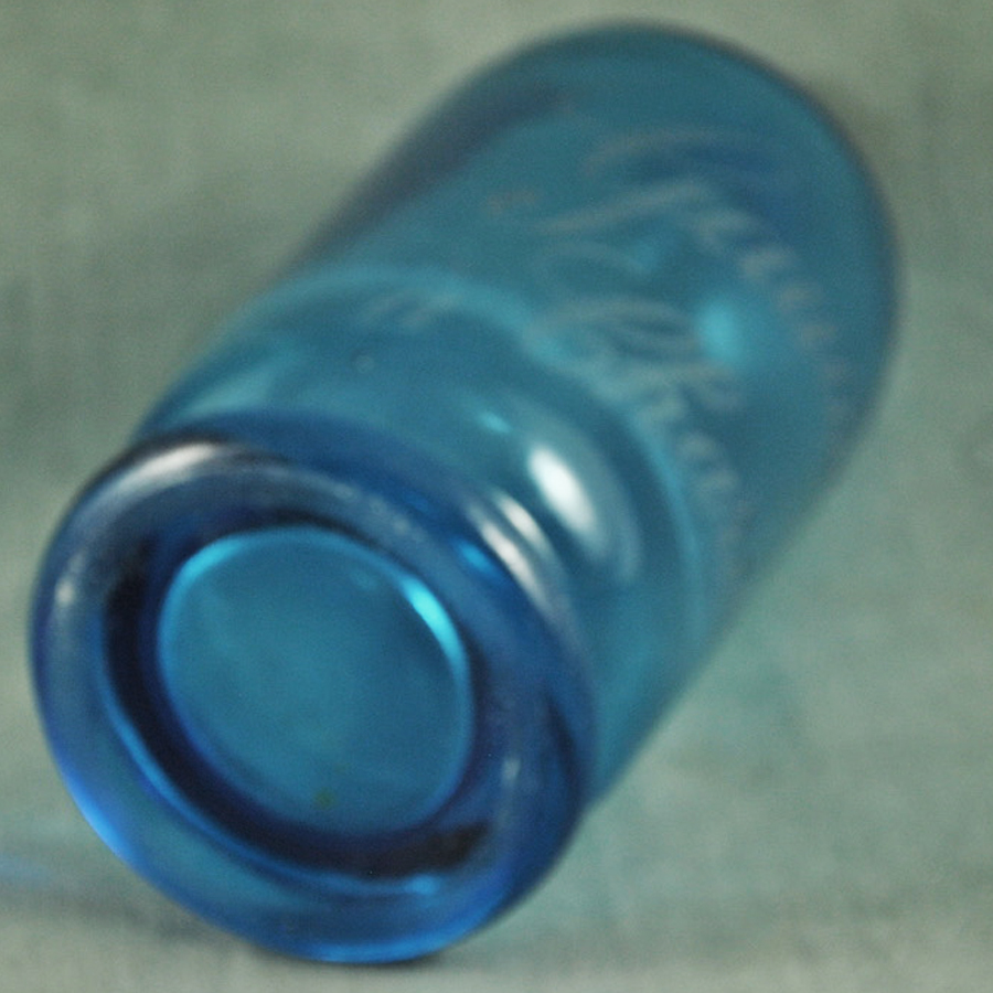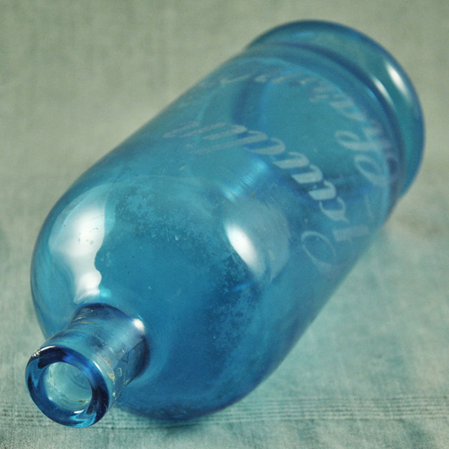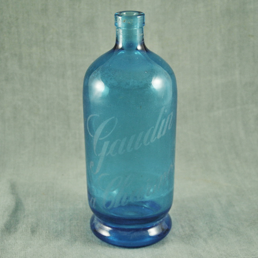 Bouteille siphon 1900 en verre épais bleu gravé: « Gaudin à Charmont » en bon état.