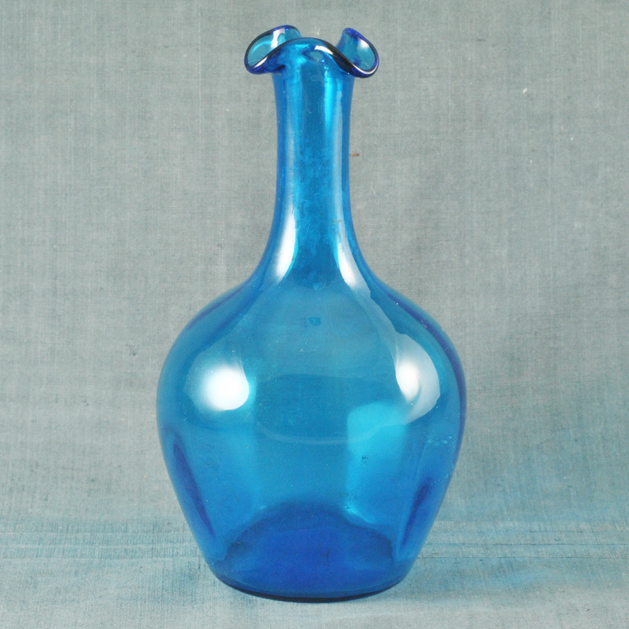Jolie carafe fin XIXe en verre bleu soufflé.
