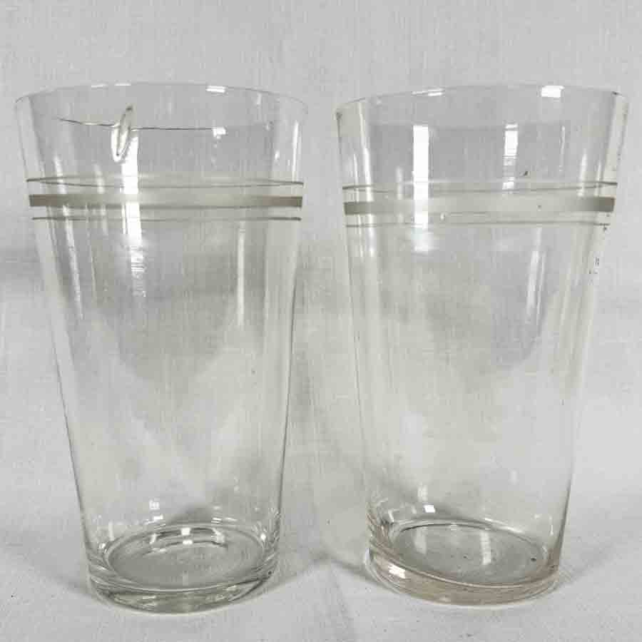 2 Grands gobelets XIXème en verre soufflé très fin, anneau gravés, en bon état.