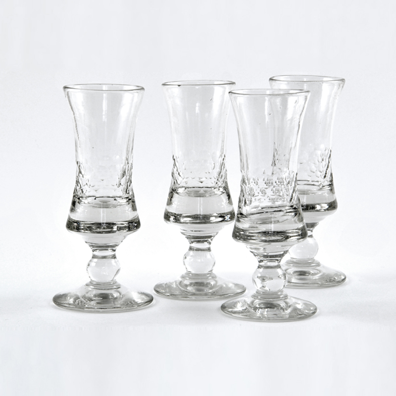 4 Verres à vodka, 19ème, soufflés, à petites pastilles