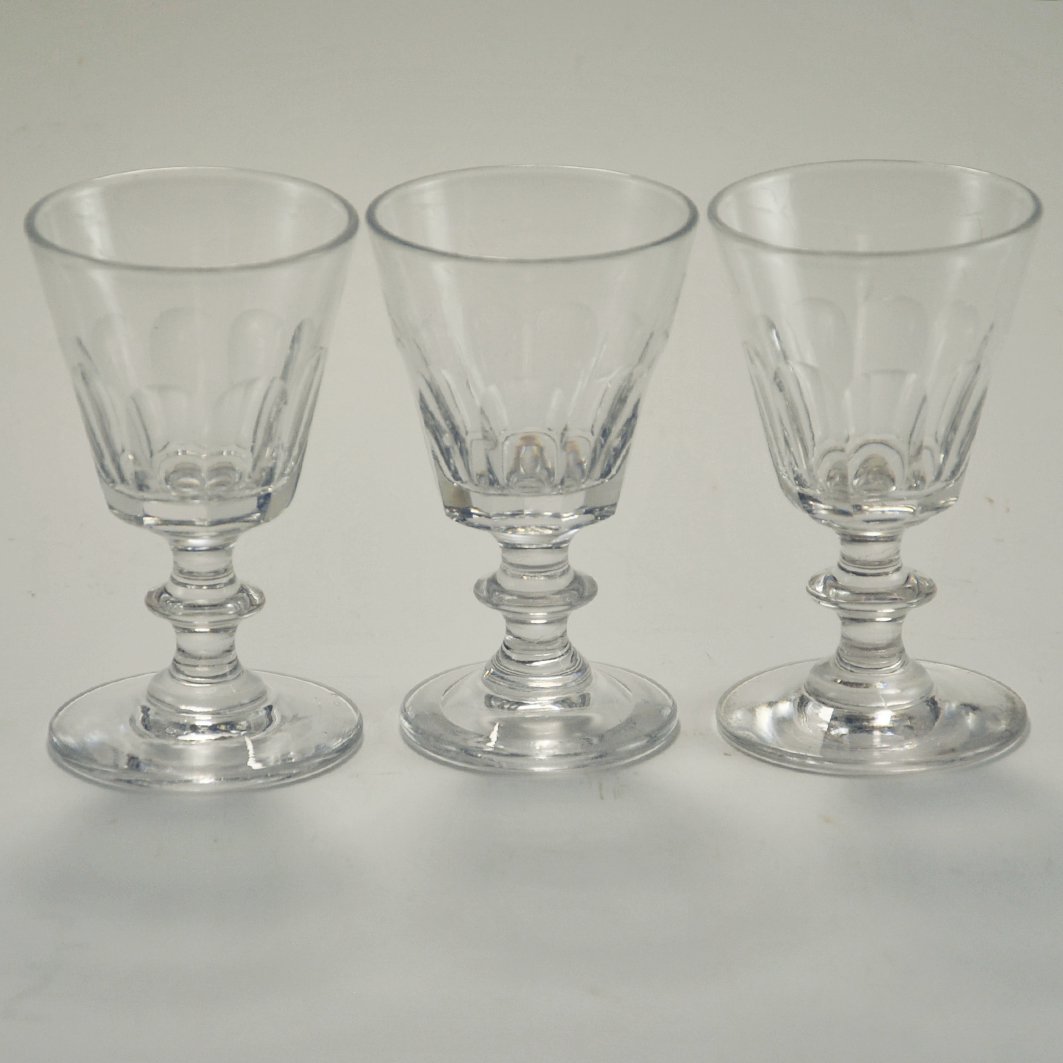 3 jolis verres 1900 à porto en cristal soufflé et taillé, en excellent état.