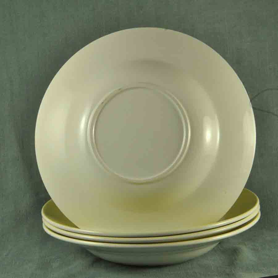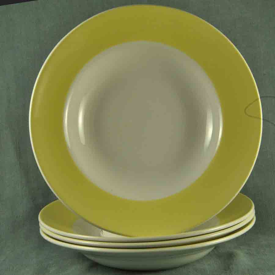 2 x 6 assiettes à creuses XIXème en faïence ivoire de Salins, décor: »Trianon », arabesques, fleurs vert de gris en bon état.- vendues par 6-